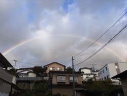 とーみ屋コラム 虹出てました おはよございまーす 今朝の看板犬風太のパトロールの時に、でっかい虹が出てました 朝に見る虹は「今日1日が幸運に満ちている事を示す」との事なので嬉しい 皆様も今日が幸運に満ちた一日でありますように さて、本日も楽しく平和に頑張りまーす #パトロール #とーみ屋